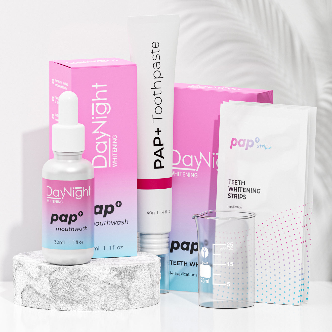 Predstavljamo vam set za kućno izbjeljivanje koji uključuje zvučnu četku s LED svjetlom, dnevnu i noćnu pastu te dvije zamjenske glave. Dnevna pasta koja sadrži 100% prirodno kokosovo ulje ne samo da liječi zube, već u kombinaciji s našom soničnom LED četkicom smanjuje količinu bakterija u ustima.